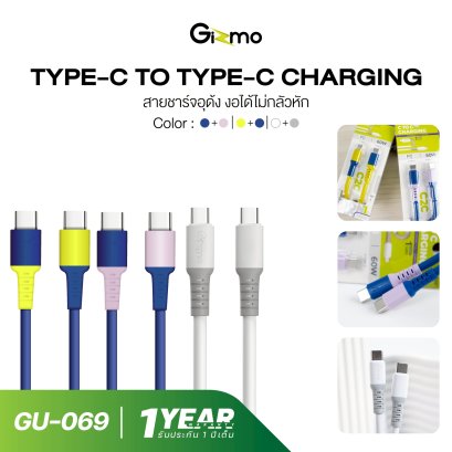 สายชาร์จเร็ว 60W ดีไซน์นุ่มมือ สายไม่พันกัน ชาร์จไว ทนทาน สีสวยสดใส ใช้ได้ทุกอุปกรณ์ USB-C