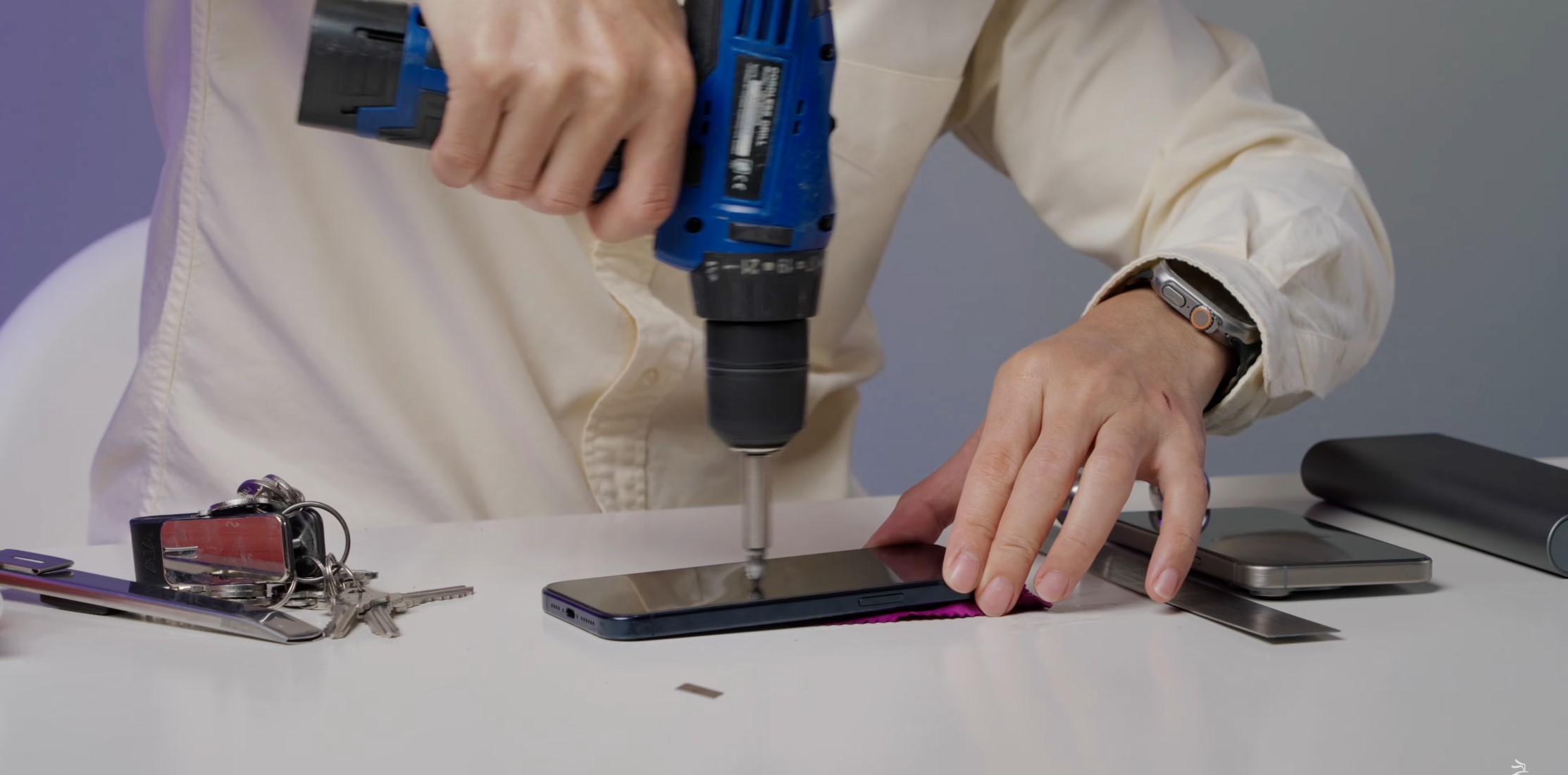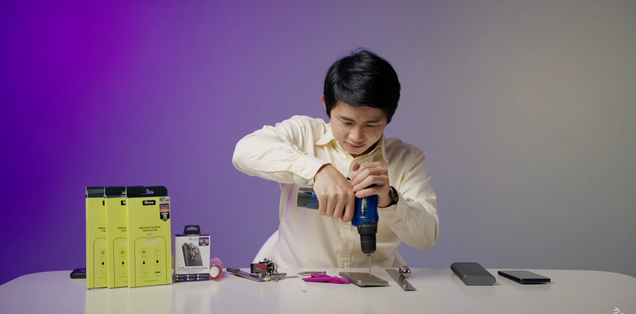 มาทดสอบการกันรอย กันกระแทกแบบโหดขึ้นไปอีกด้วยการใช้ “สว่าน” เจาะลงไปบนหน้าจอ! ด้วยหัวสกรู ดอกสว่าน ทั้งกด ทั้งถู แต่… หน้าจอแทบไม่เป็นอะไรเลย อาจจะเกิดร่องรอยบนหน้าจอนิดหน่อย แต่ถ้าเทียบกับการใช้งานในชีวิตประจำวันคงไม่ได้เจอสถานการณ์แบบนี้บ่อยๆ แน่นอน ถือว่าฟิล์มกระจกกันรอย Gizmo Clear ตัวนี้สามารถกันรอย กันกระแทกได้ดีเยี่ยมสุดๆ