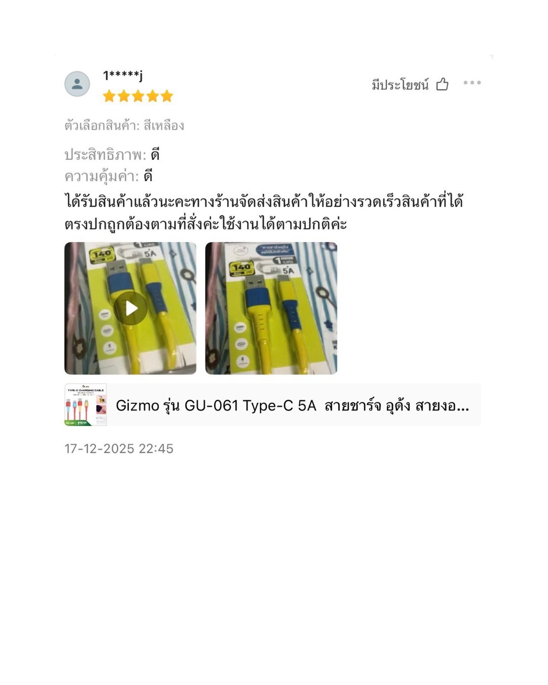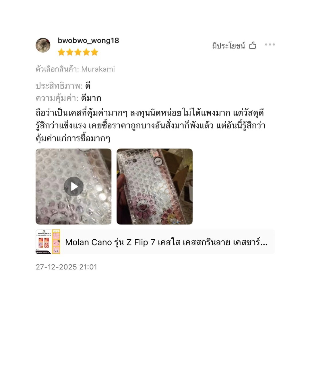 คุณภาพตรงปก และคุ้มค่ากับความไว้วางใจของคุณแน่นอนค่ะ"