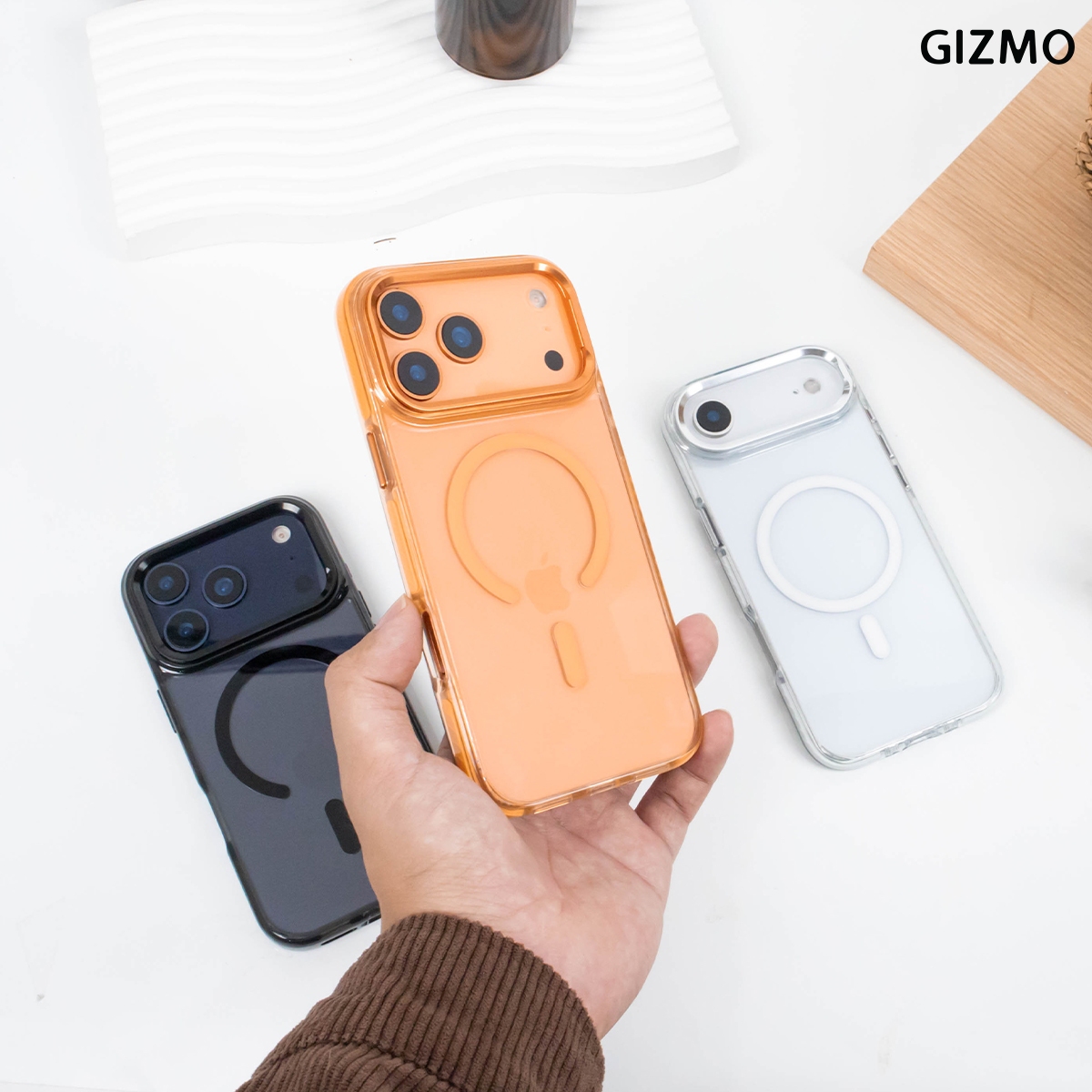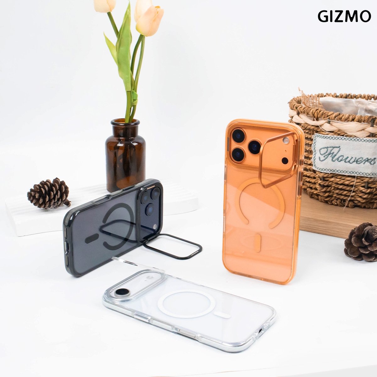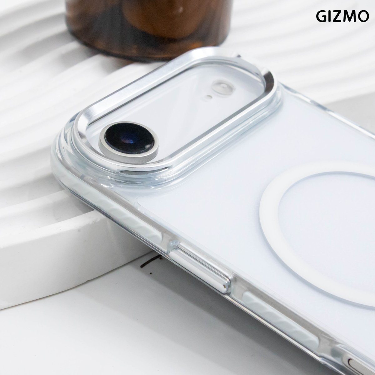 Gizmo Metal Camera Stand with Magsafe เคสคุณภาพระดับพรีเมียม สำหรับ iPhone 17 ที่รวมความแข็งแรงและความสะดวกเข้าด้วยกัน ตัวเคสทำจากวัสดุ PC+TPU ปกป้องเครื่องจากรอยขีดข่วนและแรงกระแทก พร้อมสาร Anti-Yellowing ช่วยให้เคสใสเหมือนใหม่ยาวนาน มาพร้อมขาตั้งโลหะในตัว ดูหนัง ถ่ายคอนเทนต์สะดวกสุดๆ