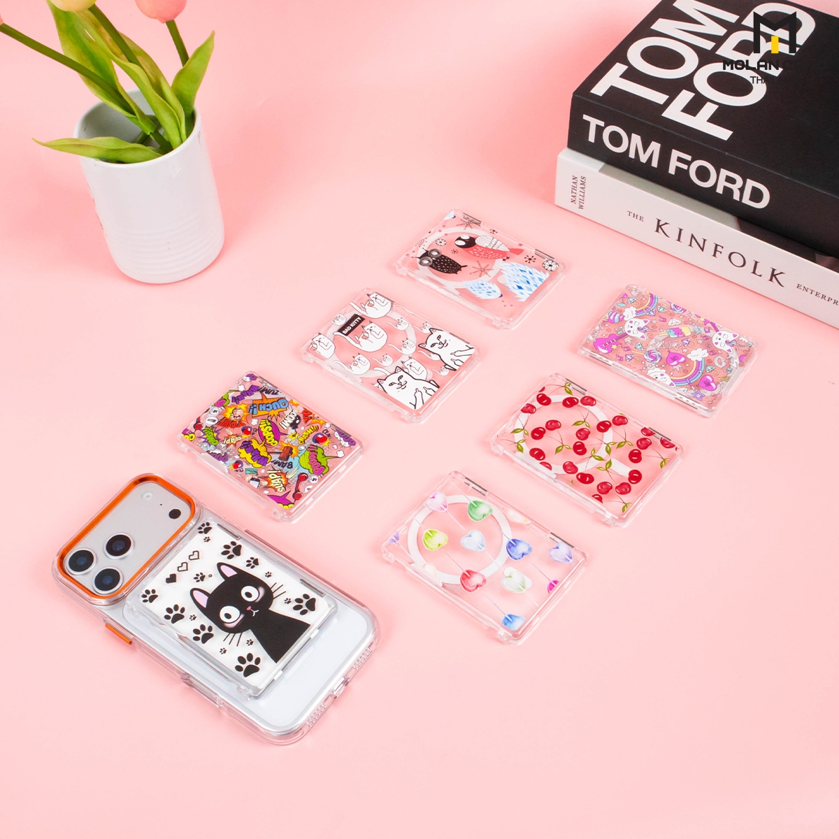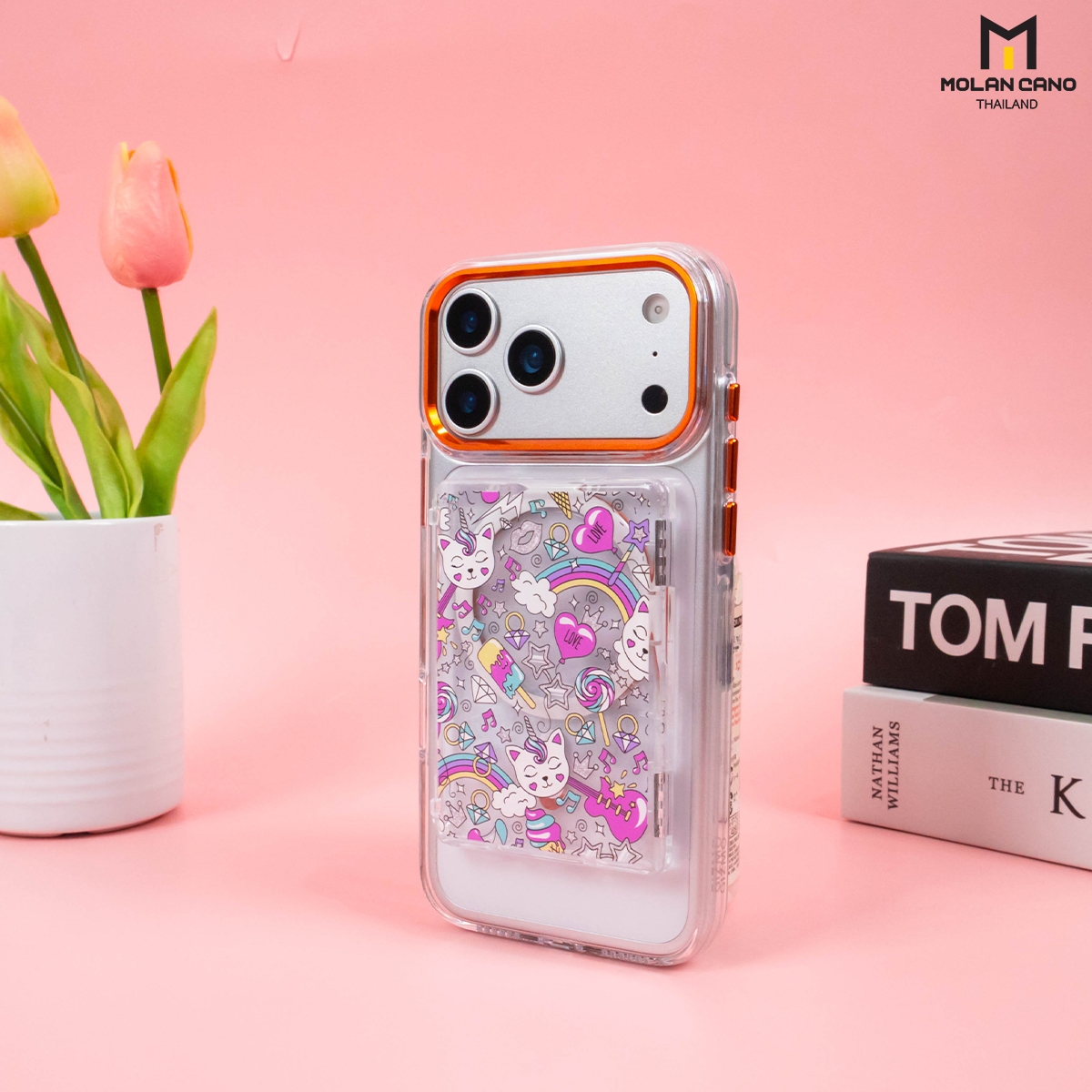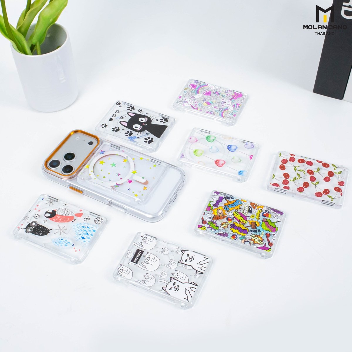 Molan Cano Magbox Card Printing กล่องใสสกีนลายสุดน่ารัก รองรับการใช้งานกับสมาร์ตโฟนที่มีระบบ MagSafe ติดแน่นด้วยแม่เหล็กแรงสูง สามารถใส่บัตรได้สูงสุด 2 ใบ เช่น บัตรเครดิต บัตร BTS หรือบัตรคีย์การ์ด วัสดุ PC แข็งแรง ทนต่อรอยขีดข่วน พกพาง่ายและเข้ากับทุกสไตล์ของคุณ