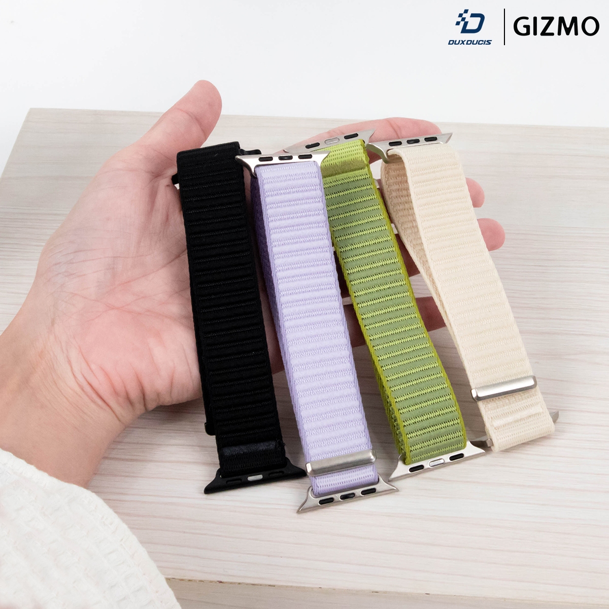 สายไนลอน DUX DUCIS สำหรับ Apple Watch โทนสีอ่อน ผลิตจากผ้าไนลอนถักคุณภาพสูง ระบายอากาศดี นุ่มไม่ระคายผิว มาพร้อมระบบล็อคตีนตุ๊กแกปรับขนาดง่าย เหมาะสำหรับกิจกรรมกีฬาและใช้งานประจำวัน