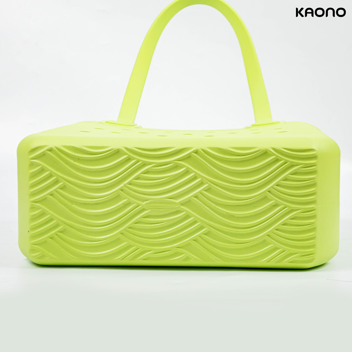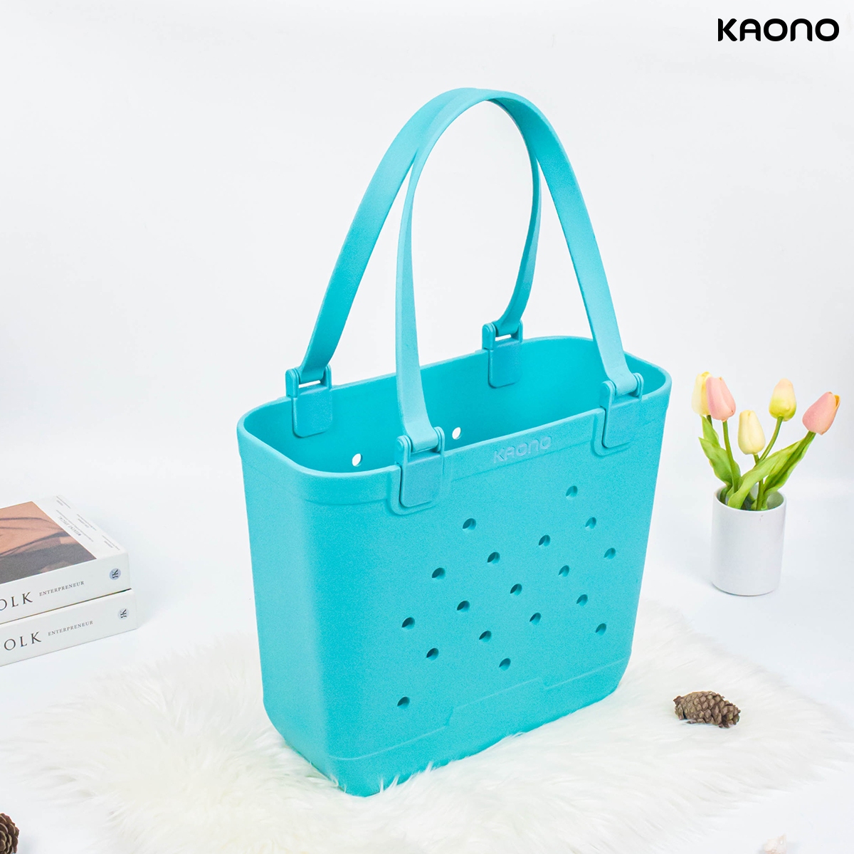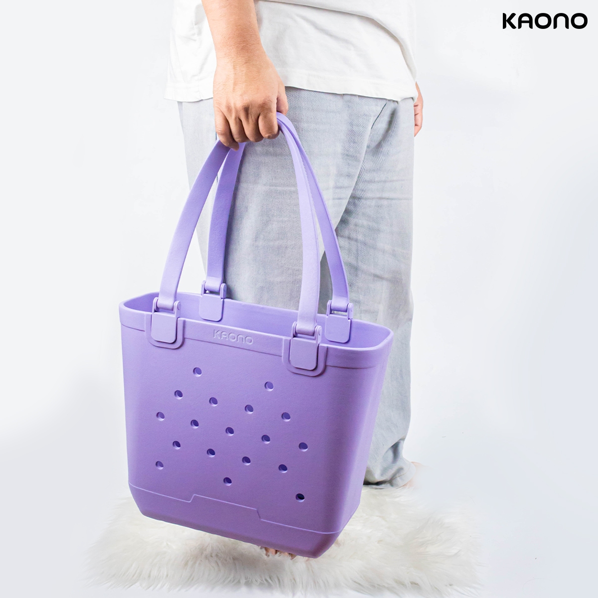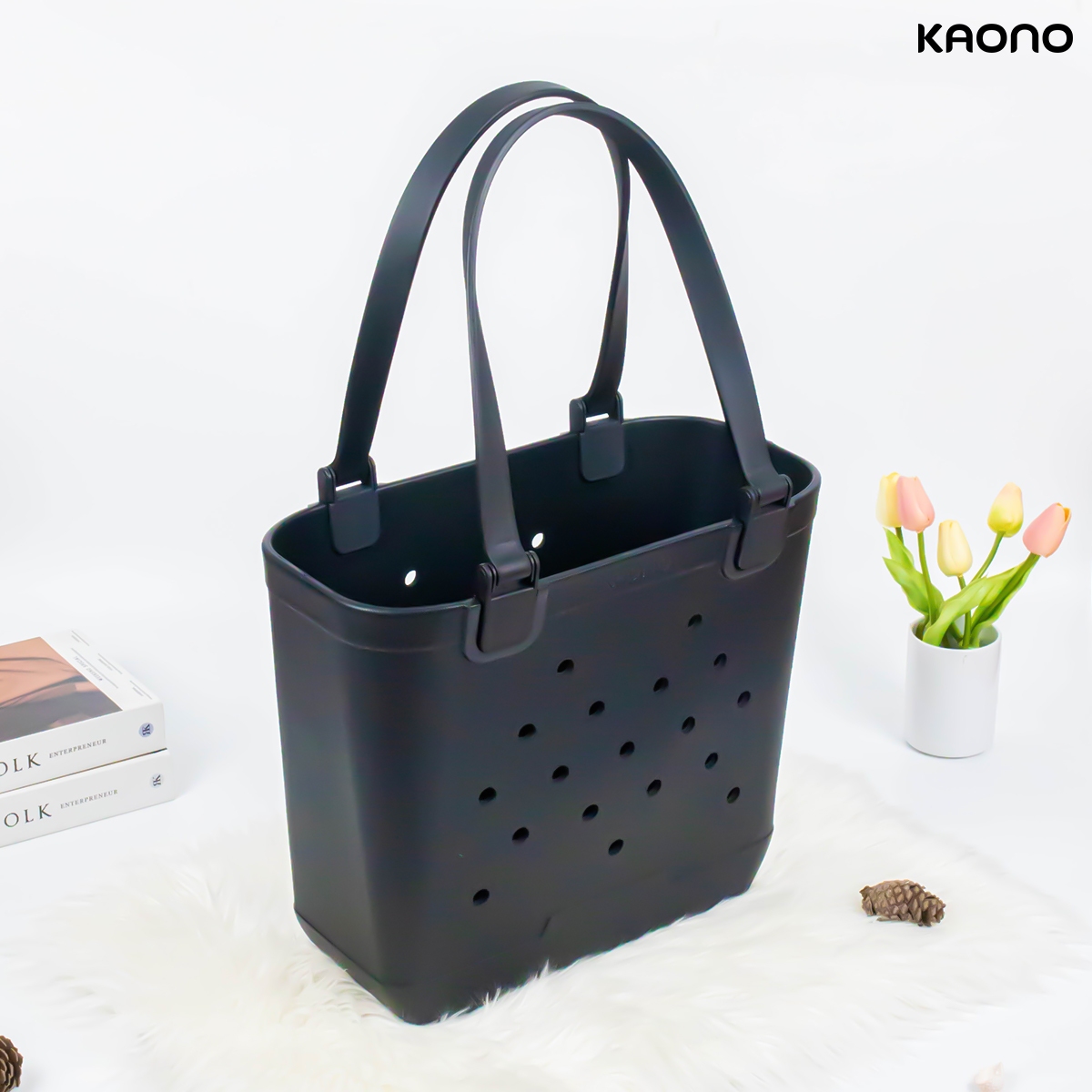 KAONO Medium Beach Bag เป็นกระเป๋าชายหาดขนาดกลางที่ผลิตจากวัสดุดี คุณภาพสูง ทนทาน กันน้ำ และทำความสะอาดง่าย ออกแบบด้วยรูปทรงตั้งได้มั่นคง พร้อมรูพรุนทั่วกระเป๋าที่ช่วยให้น้ำและทรายระบายออกได้ดี เหมาะสำหรับใช้งานริมทะเล สระว่ายน้ำ หรือกิจกรรมกลางแจ้ง มาพร้อมหูหิ้วคู่ที่แข็งแรง สามารถบรรจุของใช้ประจำวันได้เพียงพอ เช่น ผ้าขนหนู ครีมกันแดด รองเท้าแตะ หรือของใช้ส่วนตัว เหมาะสำหรับผู้ที่ต้องการกระเป๋าใช้ทน ใช้งานง่าย และมีดีไซน์โมเดิร์นเหมาะกับไลฟ์สไตล์ลุยทะเล