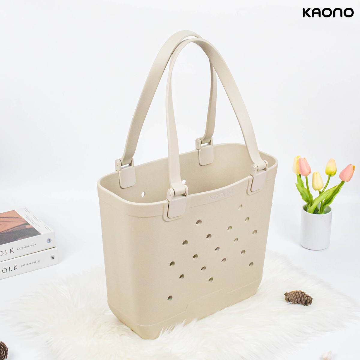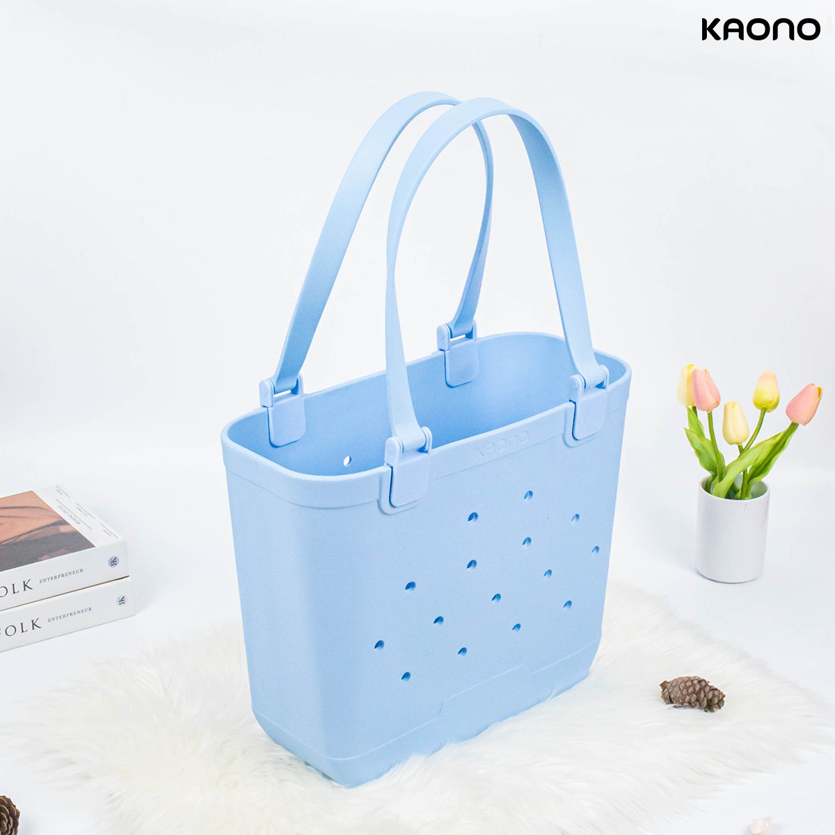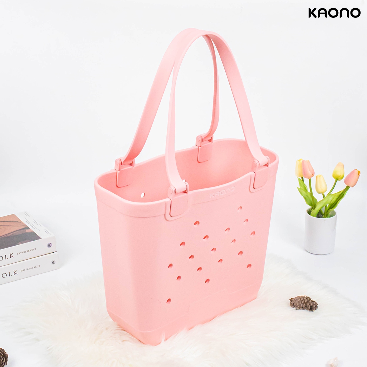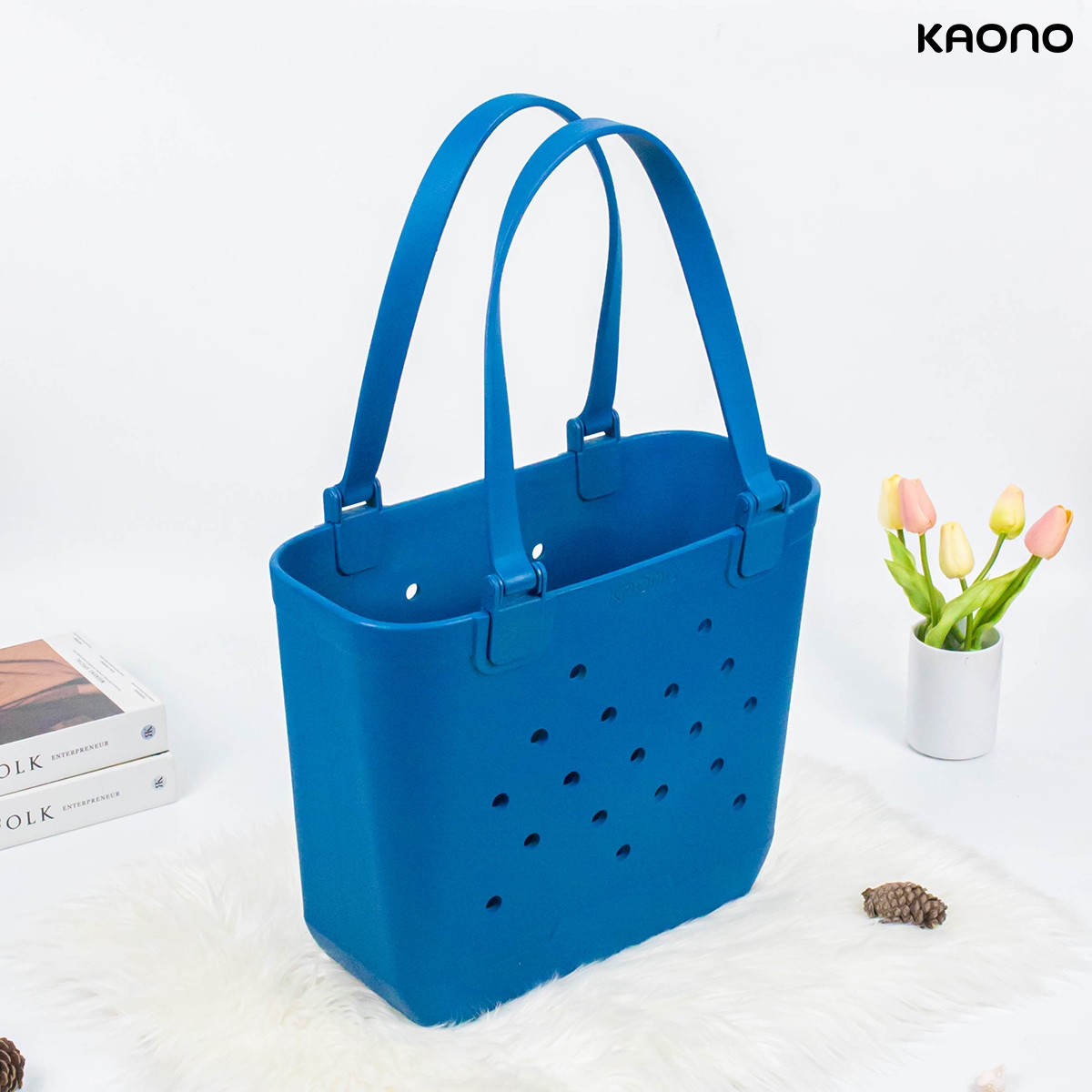 KAONO Medium Beach Bag เป็นกระเป๋าชายหาดขนาดกลางที่ผลิตจากวัสดุดี คุณภาพสูง ทนทาน กันน้ำ และทำความสะอาดง่าย ออกแบบด้วยรูปทรงตั้งได้มั่นคง พร้อมรูพรุนทั่วกระเป๋าที่ช่วยให้น้ำและทรายระบายออกได้ดี เหมาะสำหรับใช้งานริมทะเล สระว่ายน้ำ หรือกิจกรรมกลางแจ้ง มาพร้อมหูหิ้วคู่ที่แข็งแรง สามารถบรรจุของใช้ประจำวันได้เพียงพอ เช่น ผ้าขนหนู ครีมกันแดด รองเท้าแตะ หรือของใช้ส่วนตัว เหมาะสำหรับผู้ที่ต้องการกระเป๋าใช้ทน ใช้งานง่าย และมีดีไซน์โมเดิร์นเหมาะกับไลฟ์สไตล์ลุยทะเล