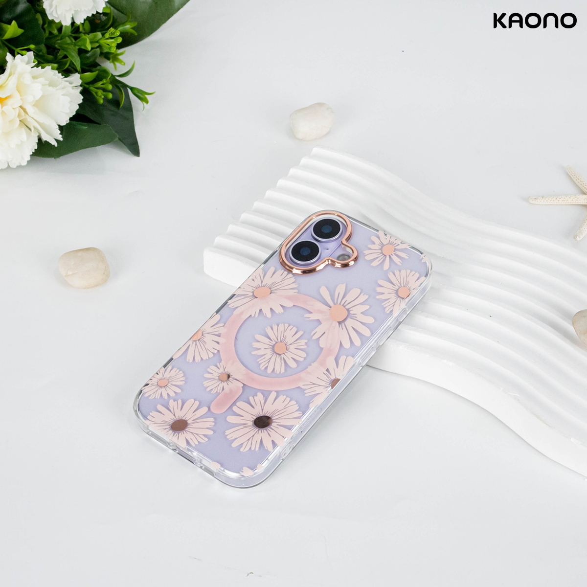 เคสลายดอกเดซี่ดีไซน์หวาน เคสใสกันเหลือง พร้อมขอบกันกล้องยกสูง และรองรับระบบแม่เหล็ก ใช้งานทนทานและสวยงามโดดเด่น