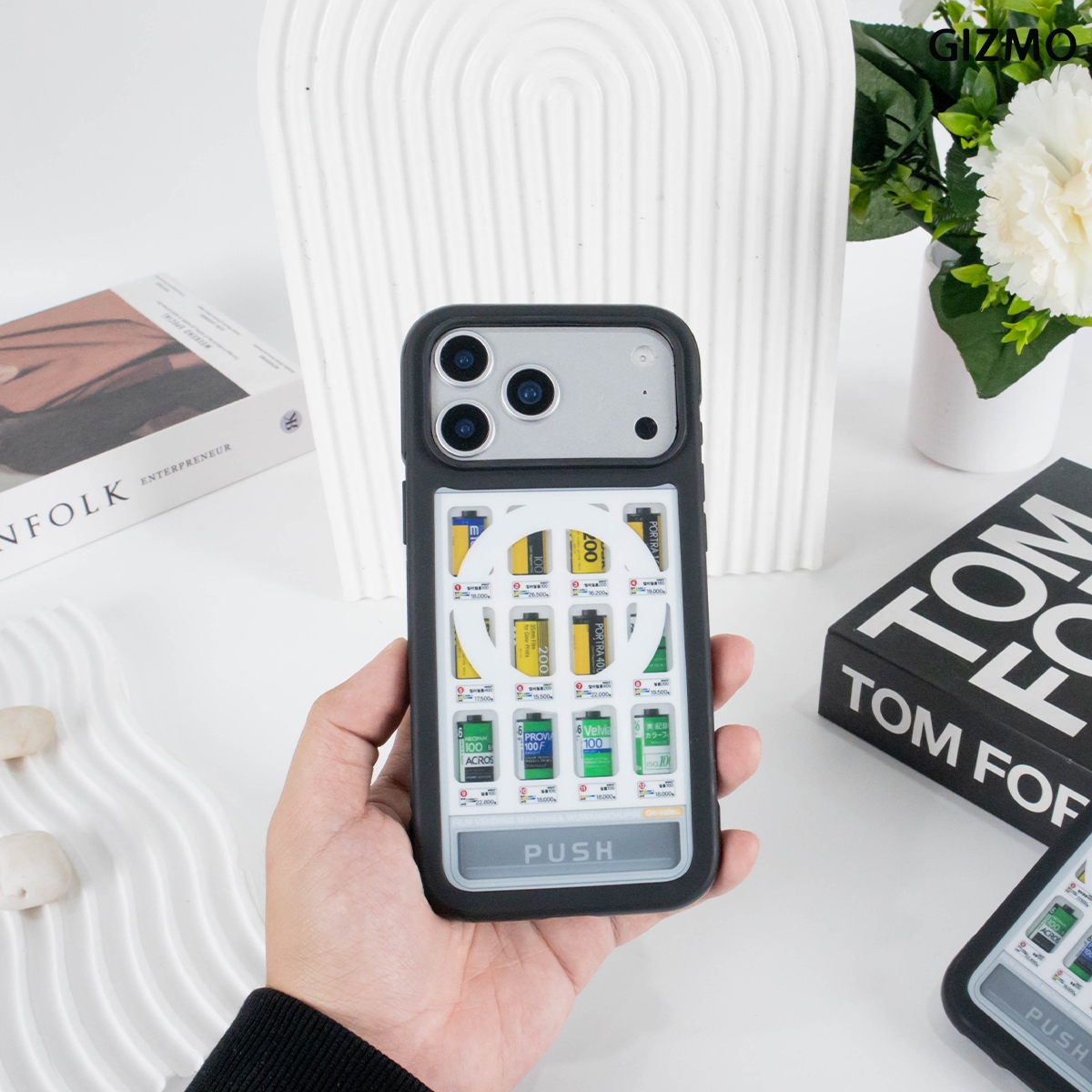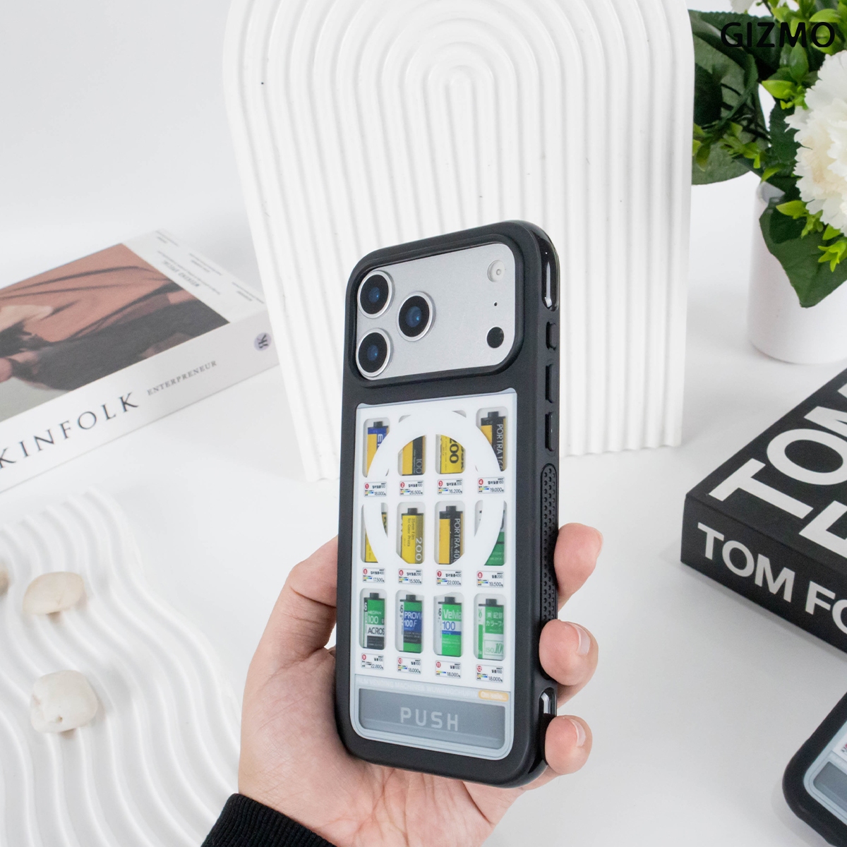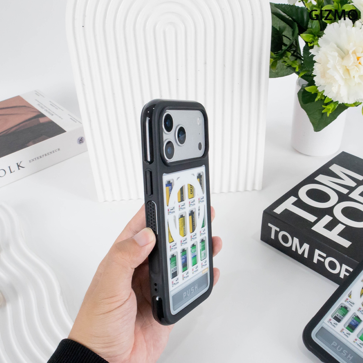 เคส iPhone 17 ดีไซน์สุด Creative ลาย Vending Machine ตู้ขายฟิล์มสีสันสดใส ตัดกับขอบเคสสีดำ Metal Black สุดพรีเมียม มาพร้อมวงแหวน MagSafe แรงดูดสูง และโครงสร้าง Hybrid กันกระแทกที่มั่นใจได้ในทุกสถานการณ์