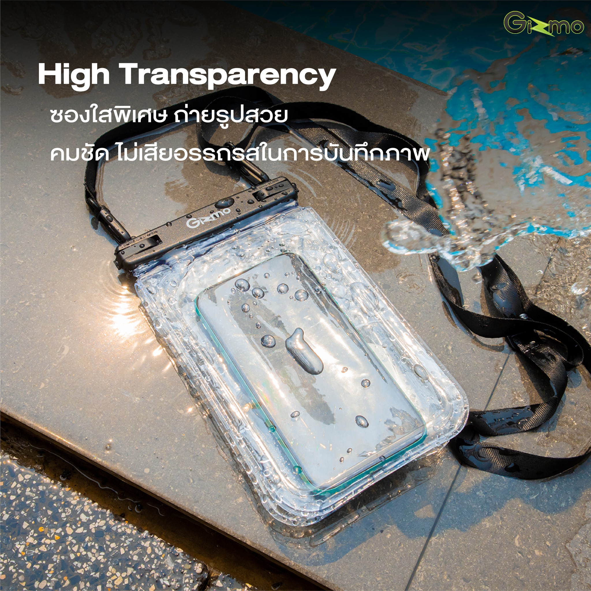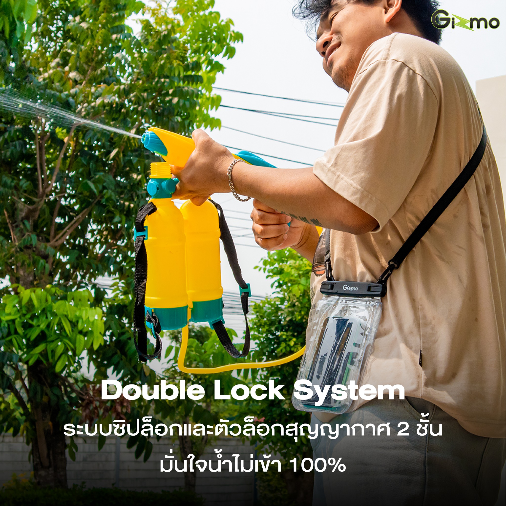 ซองกันน้ำ Gizmo GW-007 ระบบล็อก 2 ชั้นแน่นหนา กันน้ำ 100% มาตรฐาน IPX8 ดำน้ำลึก 30 เมตร ทัชสกรีนและสแกนนิ้วได้ ถ่ายรูปชัดเจน พร้อมช่องแยกใส่ของ สะดวกทุกกิจกรรมทางน้ำ